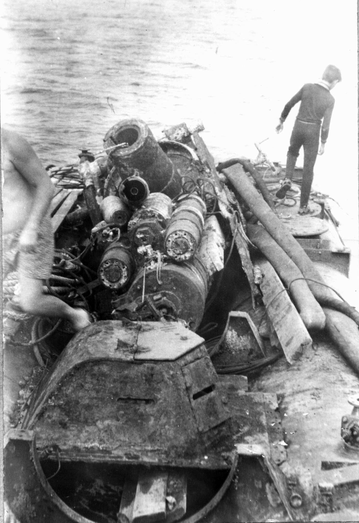 На переднем плане лежит небольшая наблюдательная бронебашня, которая стояла сверху на башне главного калибра «Ударного»