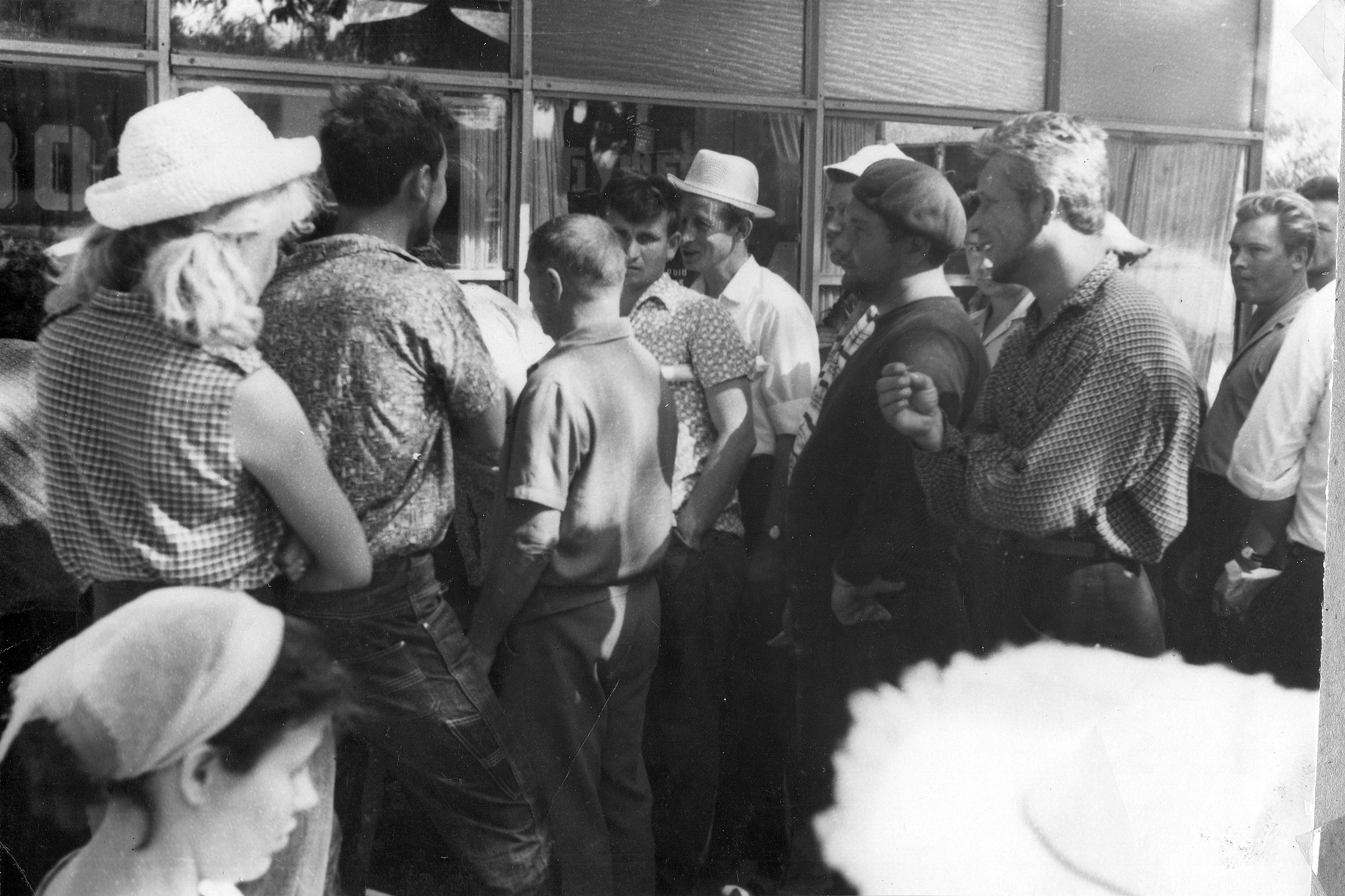 Мужик в берете — Герасимов. Справа от него в рябой рубашке — Анатолий Корчагин