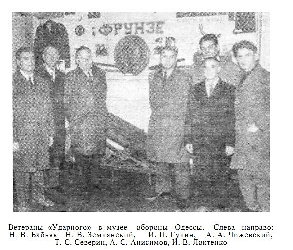 Журналисты начали розыски членов экипажа «Ударного», которые остались после боя живыми. Поиски привели в село Камышаны, что под Херсоном. Здесь проживает бывший матрос монитора, работник совхоза «Озерный», Николай Васильевич Землянский.